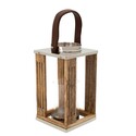 • Benjara 12 Inch Hurricane Candle Holder, Lantern Style, Fabric Band, Brown, Chrome image - 1
