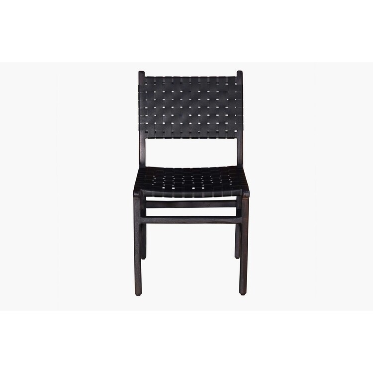 • Benjara 19 Inch Dining Chair, Black Leather Crossed Design, Iron Legs, Set of 2 image - 1