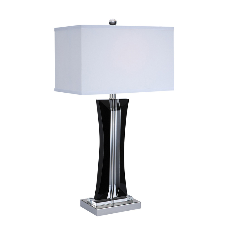 • Benjara 28 Inch Table Lamp, Glass Stand, White Rectangular Shade, Metal, Black image - 1
