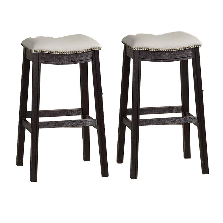 • Benjara 29 Inch Wooden Bar Stool with Upholstered Cushion Seat, Set of 2, Gray and Black image - 1