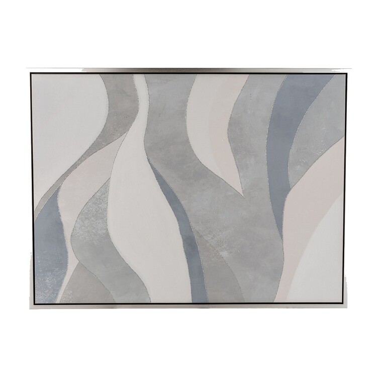 • BenJara 35 x 47 Framed Wall Art, Handpainted Green Waves Abstract Modern Sage Green image - 1