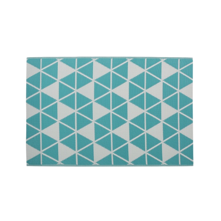 • BenJara 4 x 6 Outdoor Small Area Rug, Turquoise Green and White Geometry image - 1