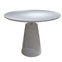 BenJara 42 Inch Dining Table, Lacquer Round Tabletop, Pedestal Metal Base, White