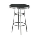 BenJara 42 Inch Round Bar Table, Ribbed Apron, Glossy Black Lacquer, Retro Style