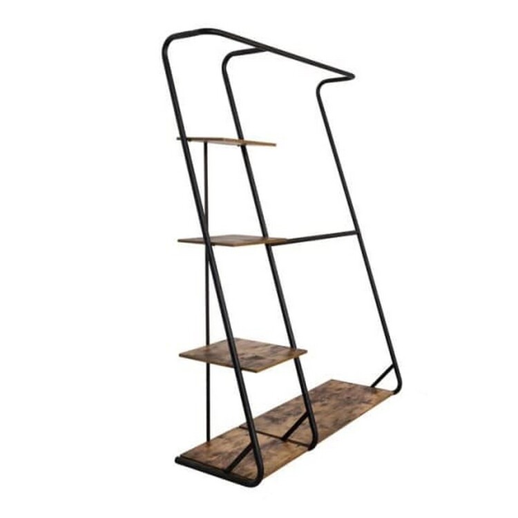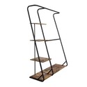 Benjara 68 Inch Clothing Hanging Rack, 3 Shelves, Z Shaped Black Metal Frame, Wood