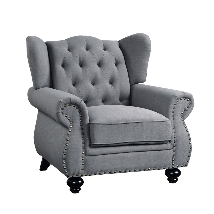 • Benjara Accent Chair with Tufted Back and Rolled Armrests, Gray image - 1