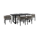 • Benjara Adiy 7pc Outdoor Dining Table and 6 Chairs Set, Gray Rope, Black image - 1