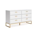 • BenJara Alli Wide Dresser, 6 Drawers, Matte White Wood, Gold Metal, 59 Inch image - 1