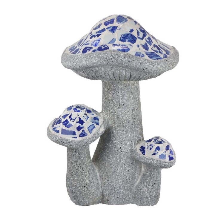 • Benjara Amyra Outdoor Accent Decor, 3 Mushroom Blue White Mosaic, Gray Resin image - 1