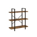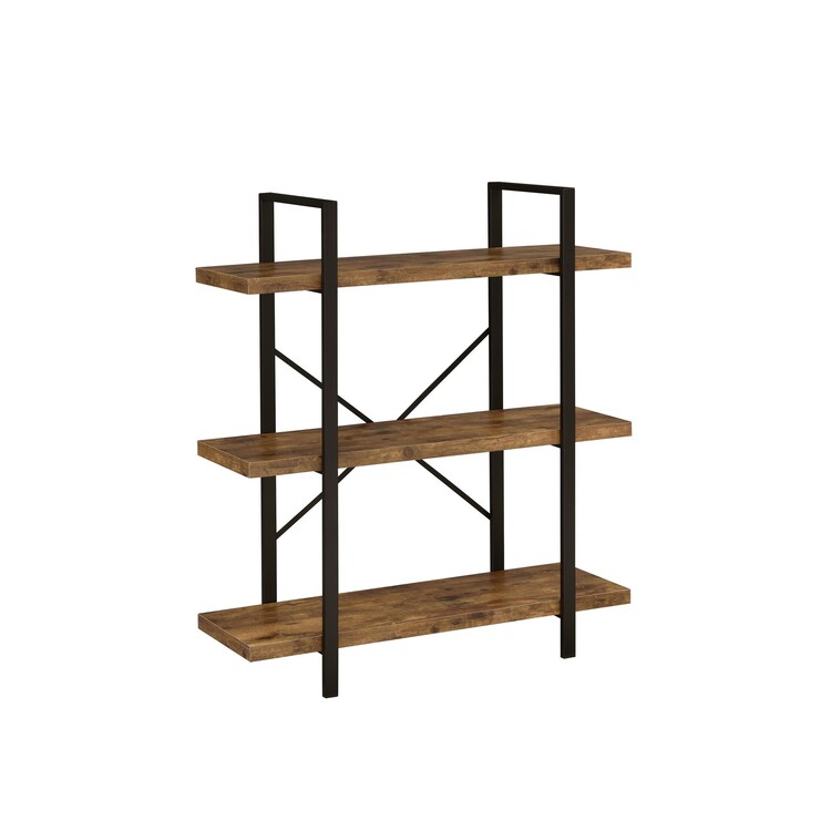 • Benjara Ana 40 Inch Wood Bookcase, 3 Shelves, Crossed Metal Design, Rustic Brown image - 1