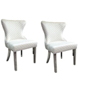 • Benjara Anova Side Dining Chair Set of 2, Rivet Trim, Silver Stainless Steel, White Fabric image - 1