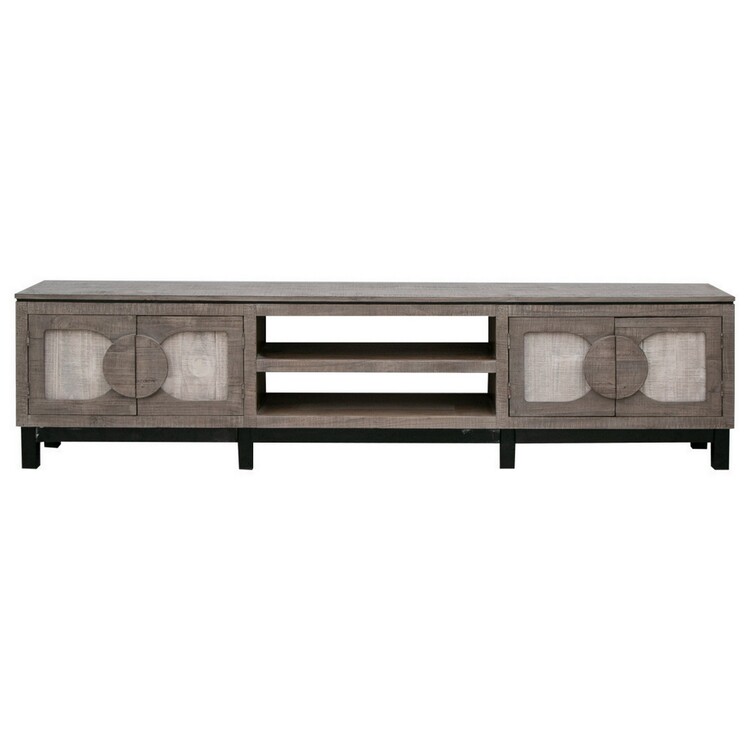 • BenJara Aose 93 Inch TV Media Entertainment Console, Shelves, Solid Gray Pine Wood image - 1