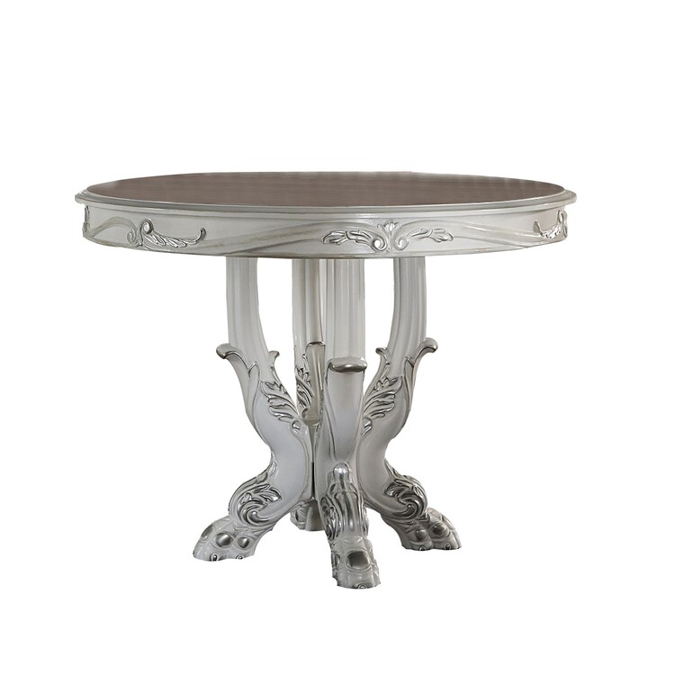 • Benjara Aurora 48 Inch Round Counter Height Table, Scrolled Pedestal Base, White image - 1