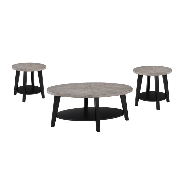 Benjara Avenue 3 Piece Coffee and End Table Set, Wood, Storage Shelf, Gray, Black