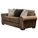 • Benjara Beni 75 Inch Loveseat, Rolled Arms, 5 Pillows, Nailhead Trim, Beige, Brown image - 1