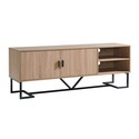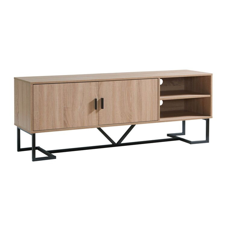 • BenJara Bery 60 Inch TV Media Entertainment Console, 2 Door Cabinet, Brown, Black image - 1