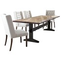 • Benjara Bexly 5pc Dining Set, Honey Brown, 4 Beige Button Tufted Chairs image - 1