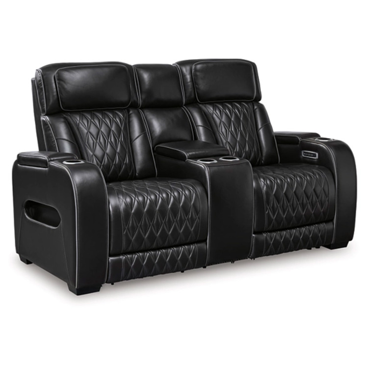 • BenJara Boyin Power Recliner Loveseat, Black Faux Leather, USB Port, 75 Inch image - 1