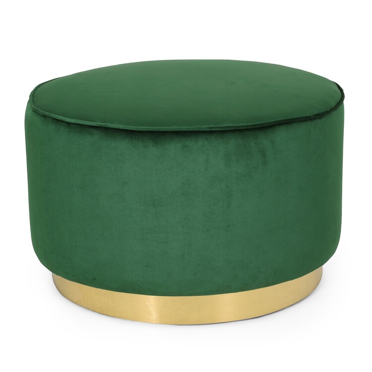 • BenJara Caitlin Swivel Ottoman, Green Velvet, Golden Metal Base, Round 28 Inch image - 1