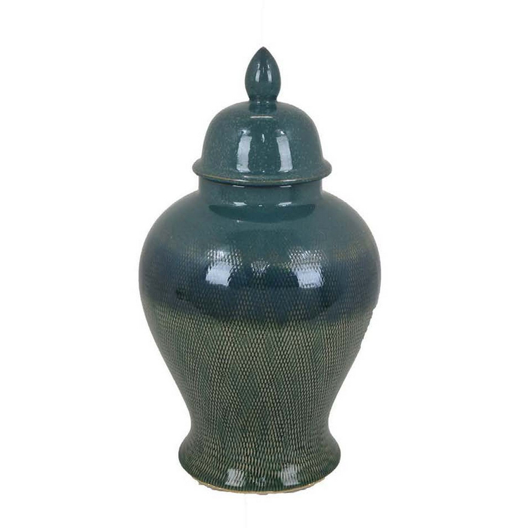 • Benjara Caty 15 Inch Temple Jar, Finial Dome Lids, Classic, Ceramic, Green Finish image - 1
