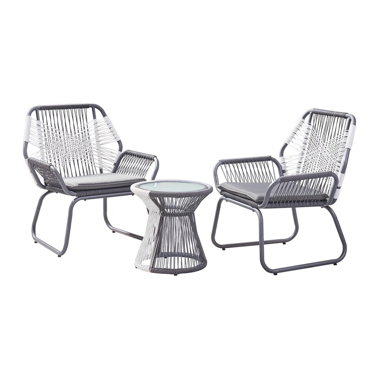 • BenJara Ciao 3 Piece Outdoor Set, 2 Chairs, 1 Table, Gray Woven Rope and Steel image - 1