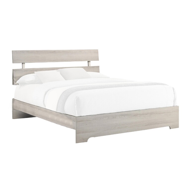 • Benjara Cuzzy Queen Platform Bed with Panel Headboard, Low Profile White Wood image - 1