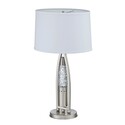 • Benjara Danie Table Lamp, 4 Way Switch, Clear Glass Tube, Silver Metal 28 Inch image - 1