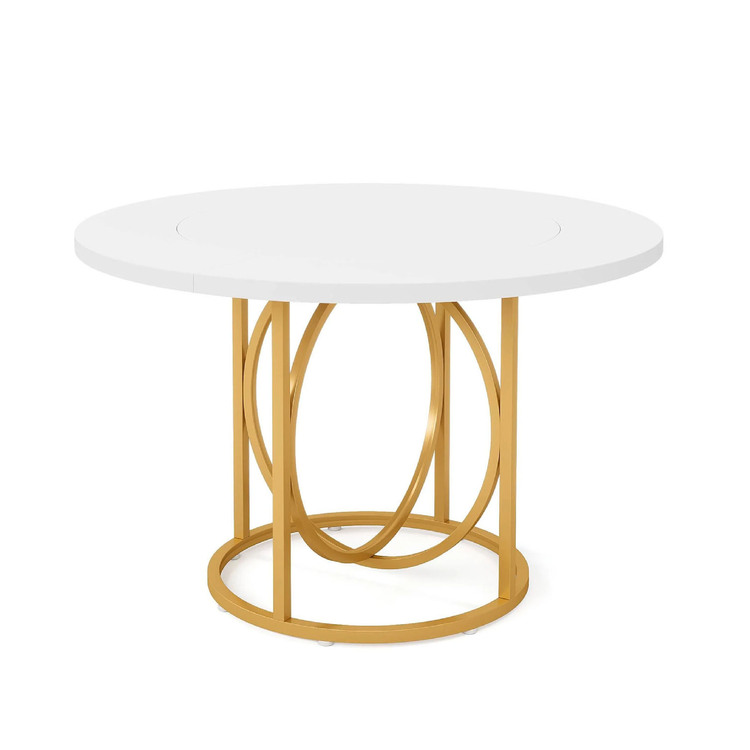 • Benjara Dining Table, 47 Inch Round White Top with Geometric Gold Metal Base image - 1