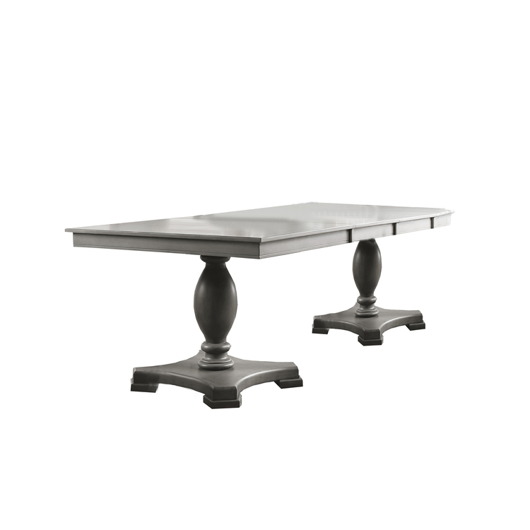 • Benjara Dining Table with Double Pedestal Base and Extension Leaf, Gray image - 1