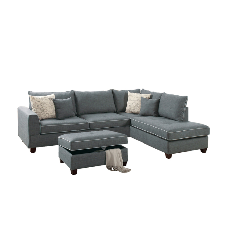 • Benjara Dorris Fabric 3 Piece Sectional With Storage Ottoman, Light Brown image - 1
