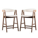 • Benjara Ebik Counter Stool Chair Set of 2, Walnut Brown Wood, Beige Boucle image - 1