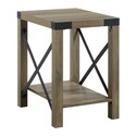 Benjara Eli 22 Inch Wood End Table, Metal Brackets, Cross Bars, Rustic Oak Brown