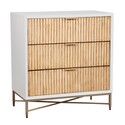 • Benjara Eli 34 Inch 3 Drawer Small Dresser Nightstand, Corrugated Panels, White, Gold image - 1
