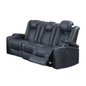 BenJara Elva 83 Inch Power Reclining Sofa, Storage Console, Blue Breathable Leather