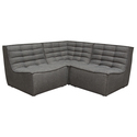 • Benjara Ema 3pc Modular Sectional Corner Sofa, Grid Tufted Gray Polyester image - 1