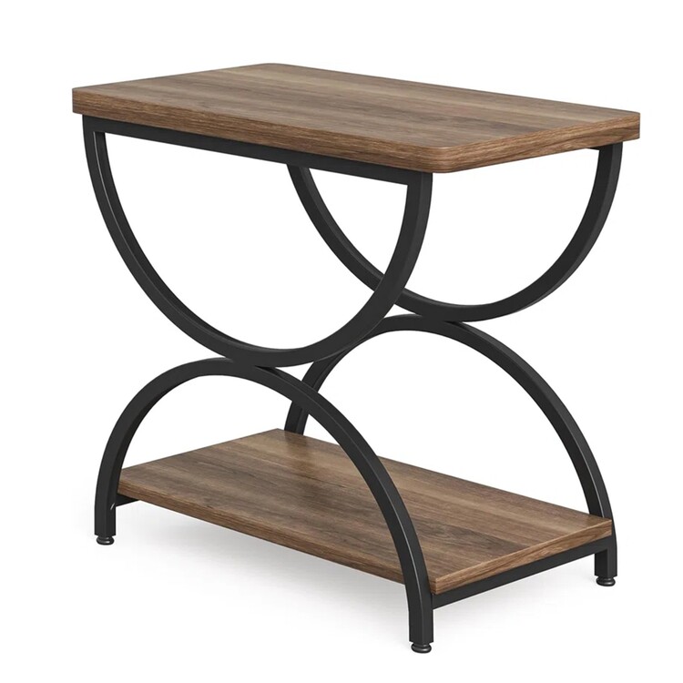 • Benjara End Table, 24 Inch Rectangular Brown Top, Black Metal Half Round Base image - 1