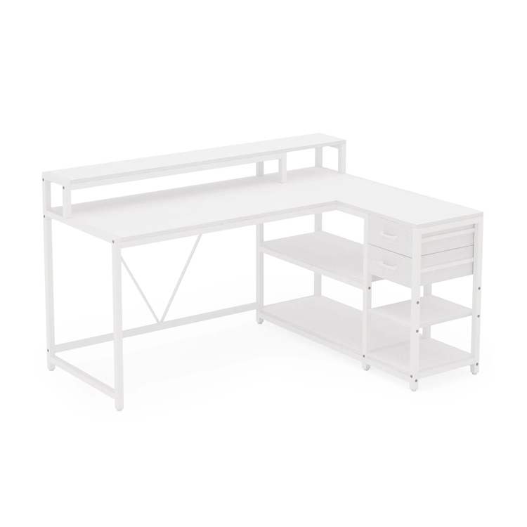 BenJara Executive Desk, L Shaped Top, Portable File Cabinet, 55 Inch White