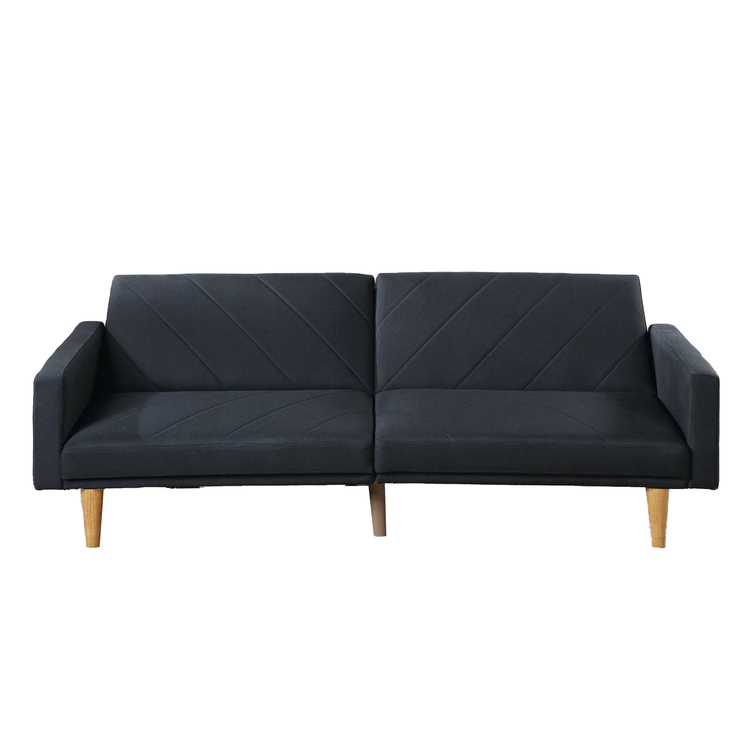 Adjustable Navy Blue Sofa Bed with Chevron Pattern and Splayed Legs