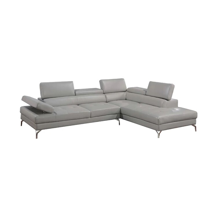 • Benjara Fio 2pc Sectional Sofa and Chaise Set, Chrome, Light Gray Faux Leather image - 1