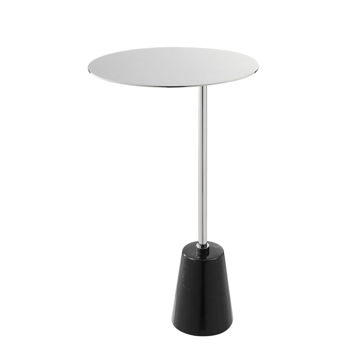 BenJara Frank 21 Inch Side End Table, Oval Chrome Steel Top, Genuine Marble Base