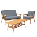 • Benjara Gala 3 Piece Loveseat, Chair and Coffee Table Set, Brown Wood, Gray Fabric image - 1