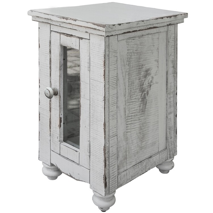 • BenJara Genie 26 Inch Chairside Table, 1 Door, Turned Legs, White Solid Mango Wood image - 1