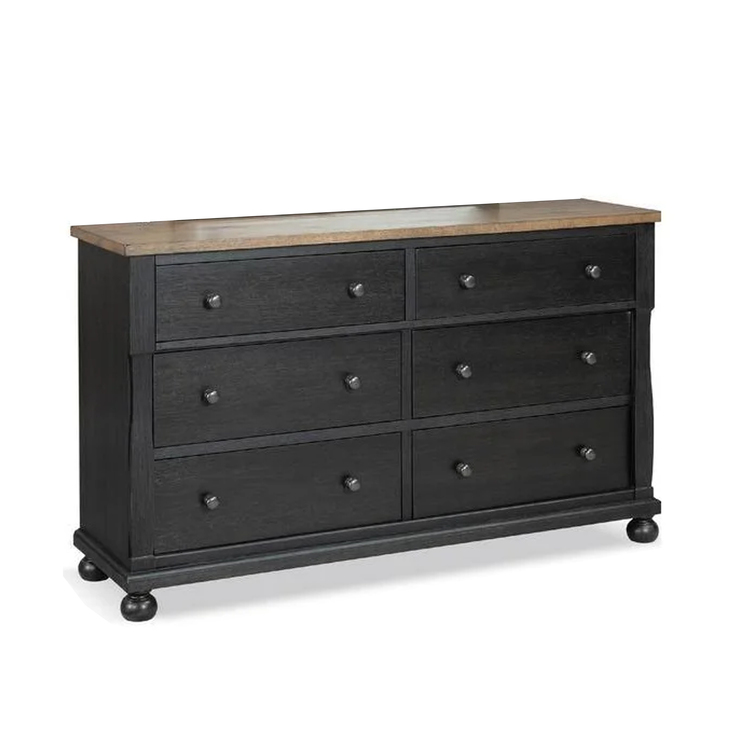 • Benjara Ginie 64 Inch Dresser, 5 Drawers and Farmhouse Legs, Black Brown Oak image - 1