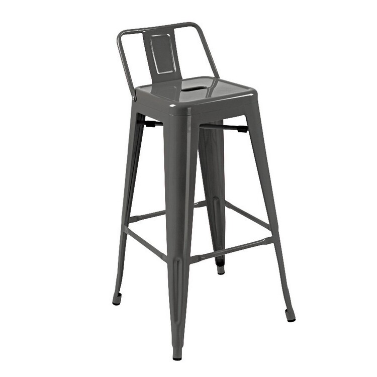• Benjara Giri 30 Inch Barstool Chair, Set of 4, Low Backrest, Tapered Legs, Dark Gray Metal image - 1