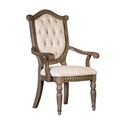 • Benjara Hama Dining Armchair Set of 2, Weathered Oak Wood, Tufted Beige Fabric image - 1