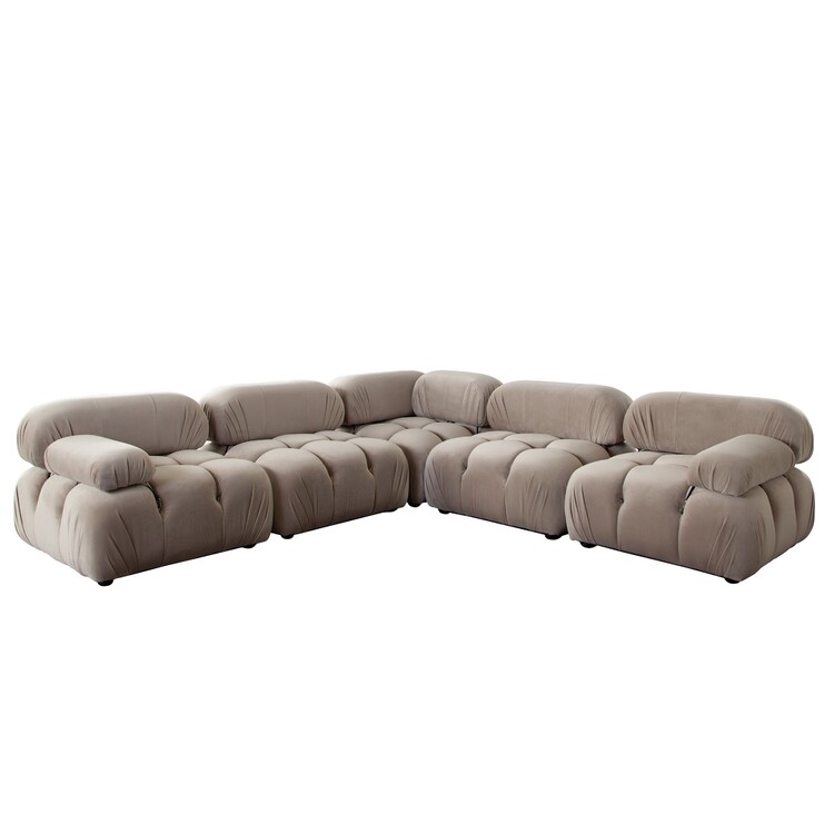 • Benjara Hito 5 Piece Modular Sectional L Sofa Set, Tan Brown Bubble Grid Tufting image - 1