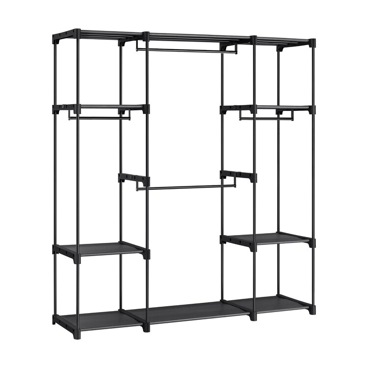 • Benjara Iko 65 Inch Wardrobe Rack, 4 Hanging Sections, 3 Shelves, Black Metal image - 1
