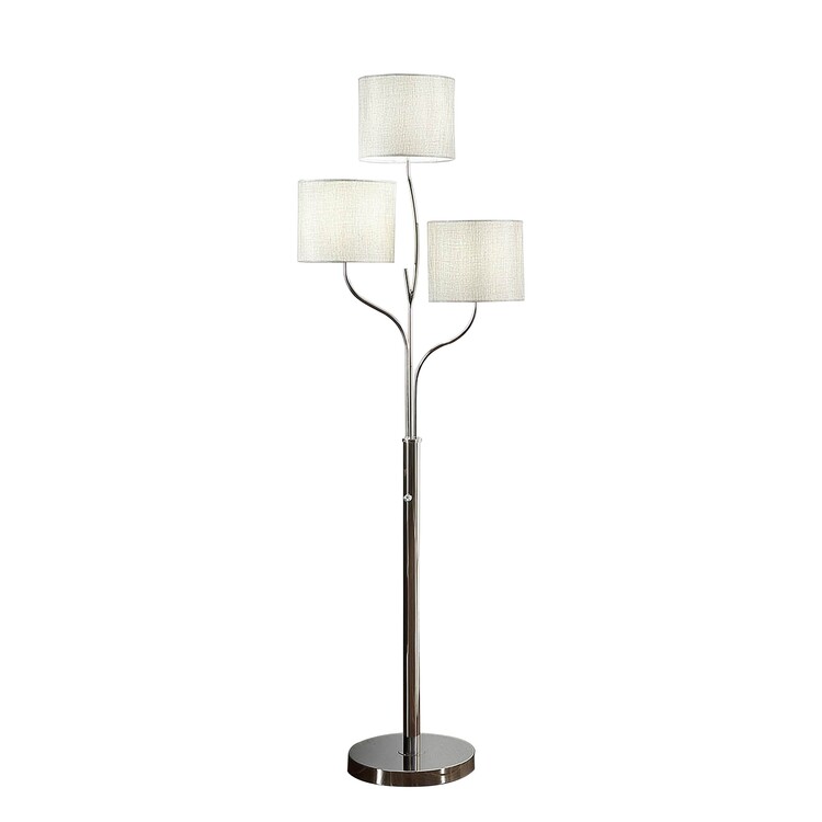 • Benjara Indi 60 Inch Floor Lamp, 3 Drum Fabric Shade, Round Metal Base, Silver image - 1