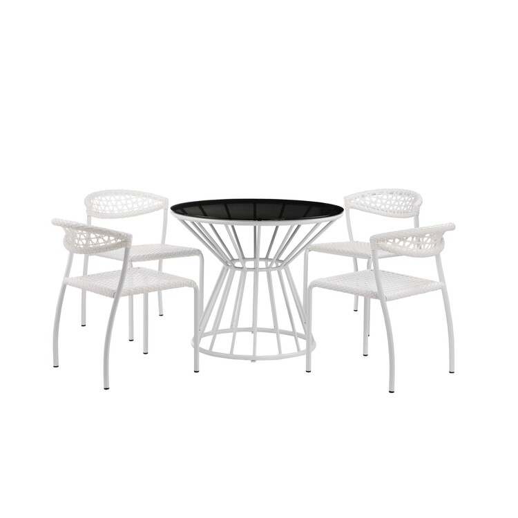 • Benjara Industrial 5 Piece Metal Outdoor Dining Set, White and Black image - 1