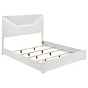 • BenJara Ivon Queen Bed, 3D Embossed LED Headboard, Glossy White Solid Wood image - 1